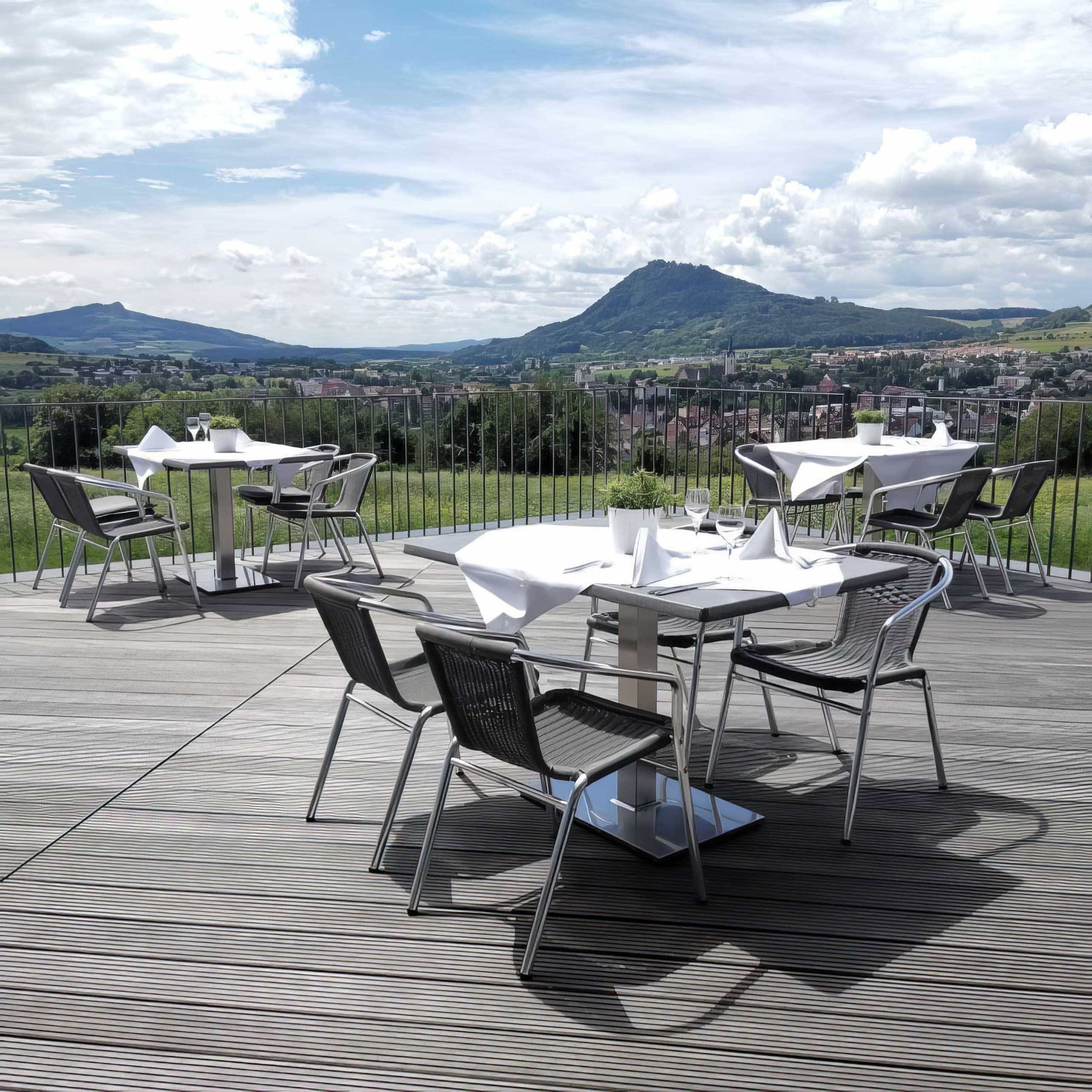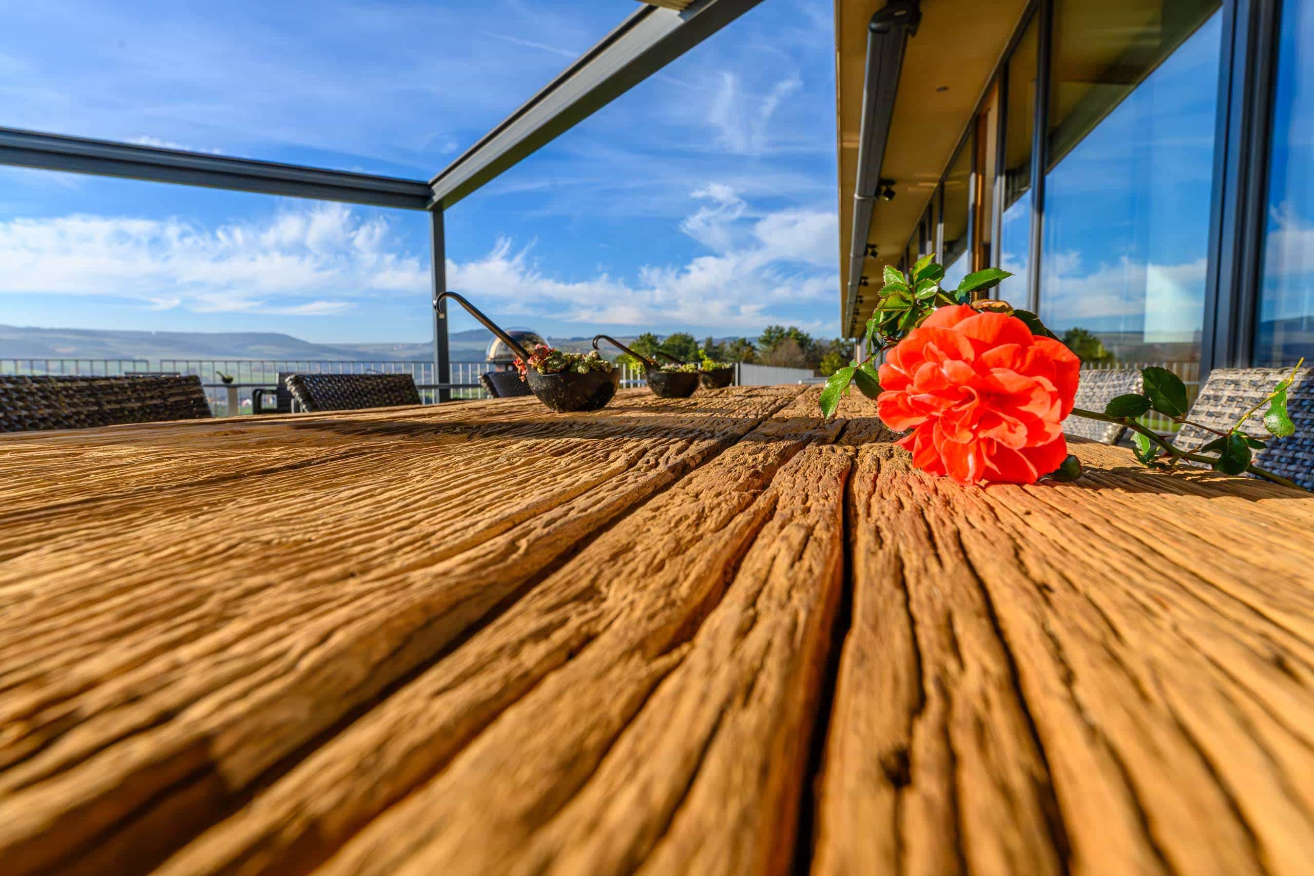 Tisch 7 bietet viel Licht, natürliche Materialien und eine zurückhaltende Eleganz. Die erhöhte Lage auf der Engener Höhe sorgt für eine ganz eigene Stimmung – Weite, Ruhe und Blick in die Hegauberge.